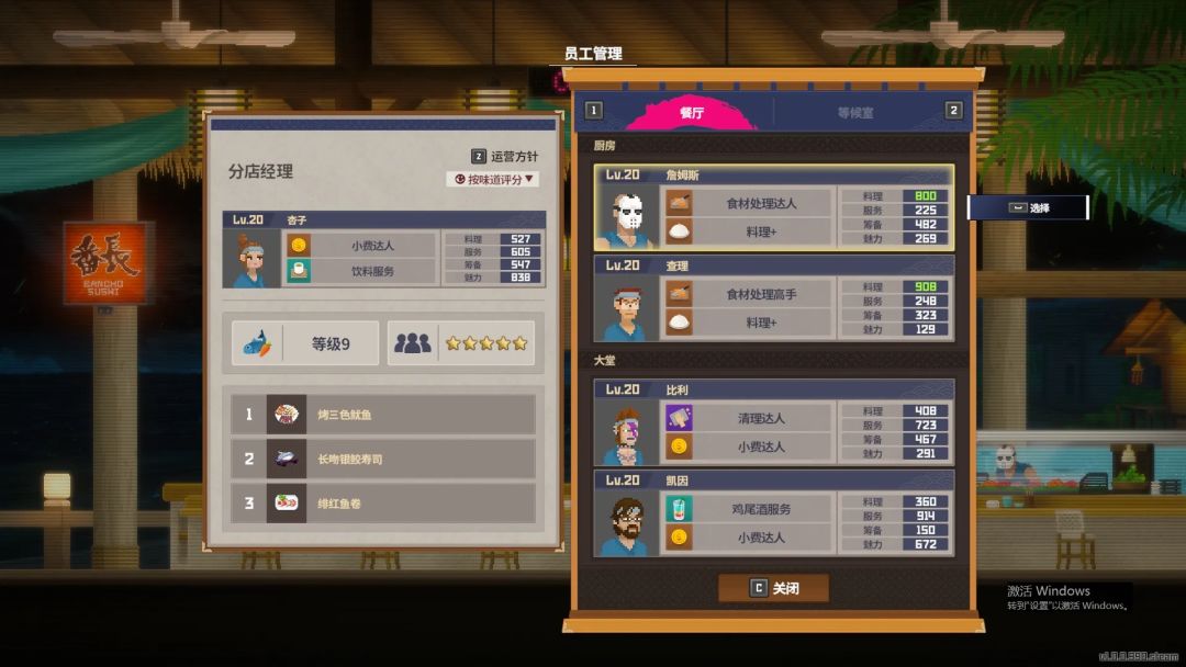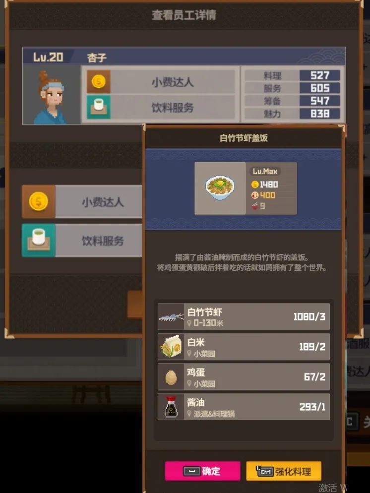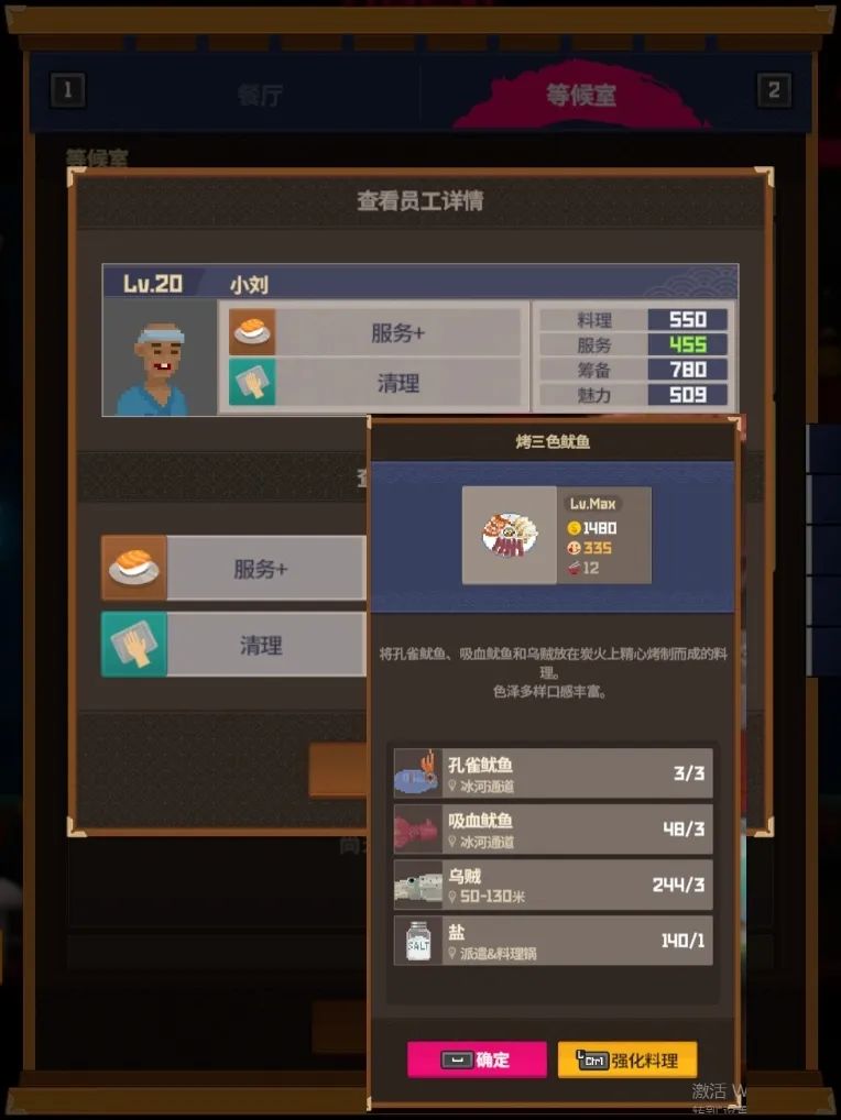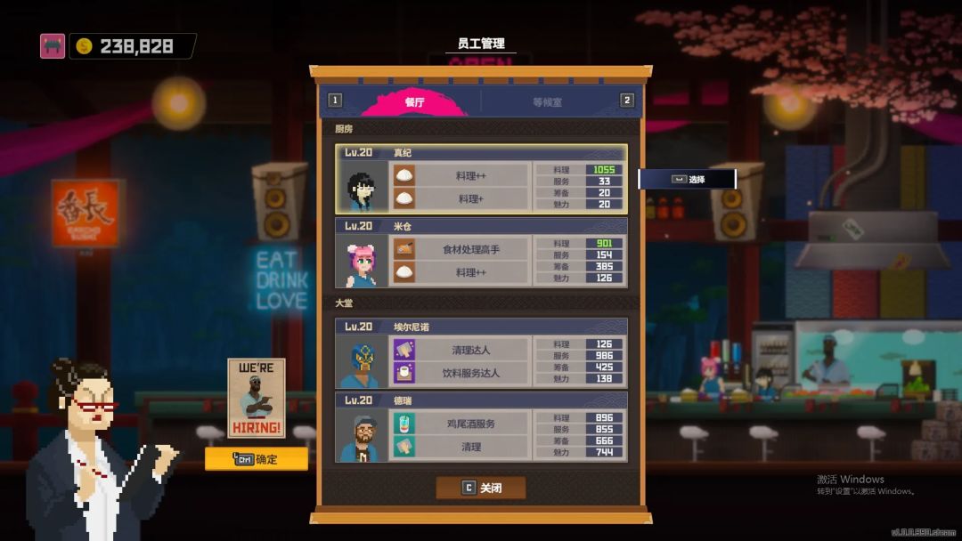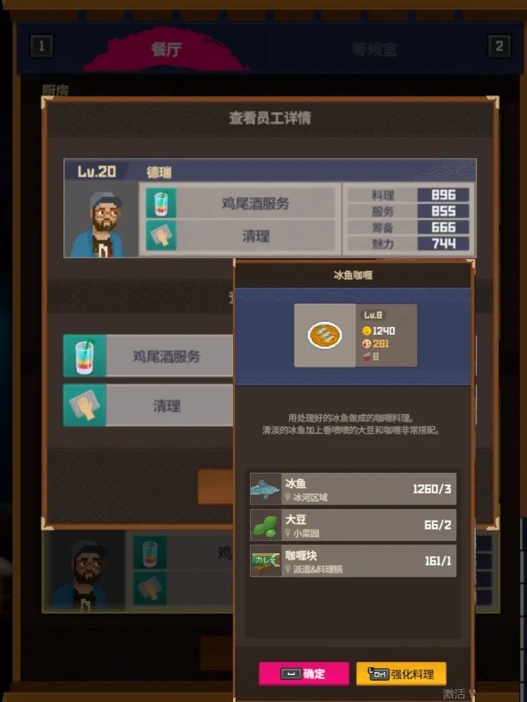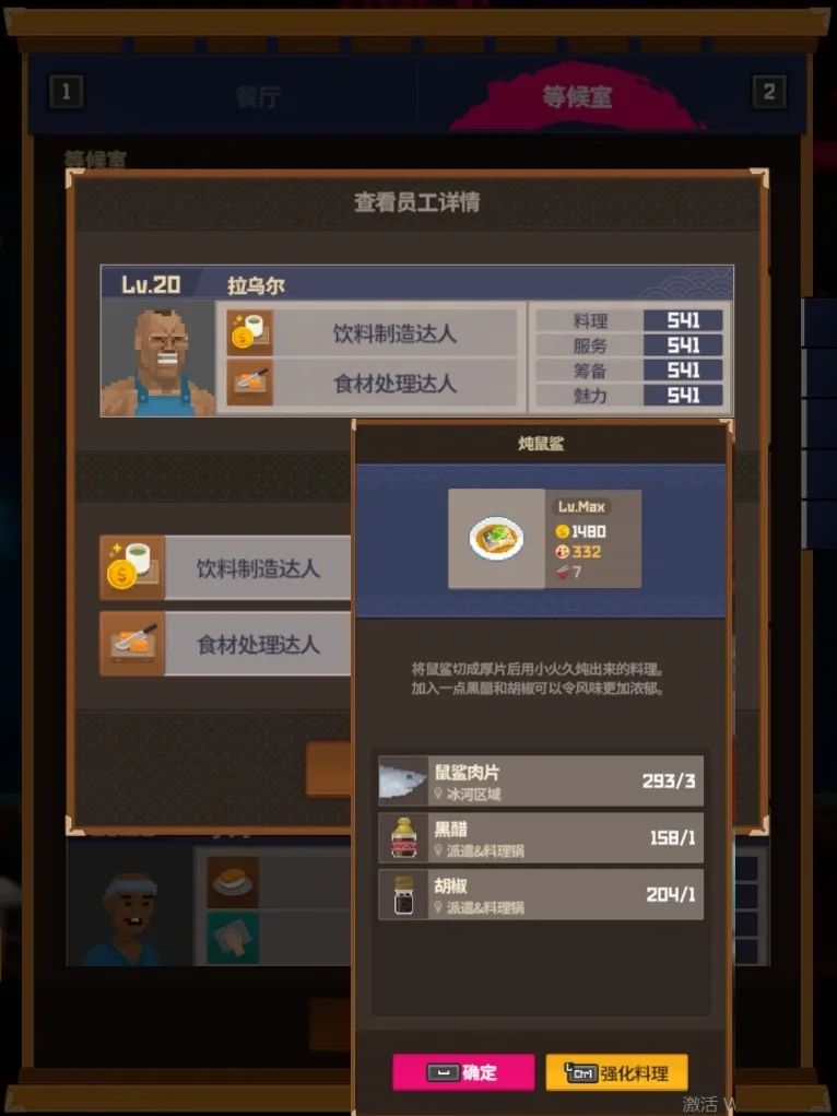 3⃣️经营理念:优先满足大堂传菜速度避免顾客因为上菜不及时走掉,所以先把大堂员工升级到15级就可以停手,分店10级即可,戴夫就磨磨芥末无聊的话倒个鸡尾酒