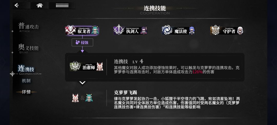 除了一些比较泛用的角色,应该尽量找有相应连携技能的效果的角色,多使用连携技能会使你事半功倍