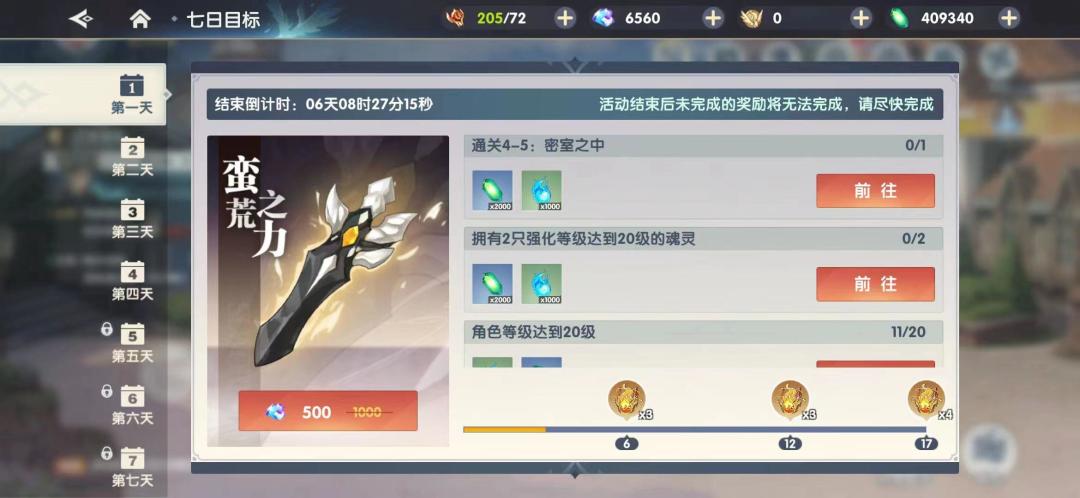 每日完成指定的小目标,总计可获得:灵犀之魂*40、灵犀之魄*30,及大量的灵石、锤炼石等道具物资