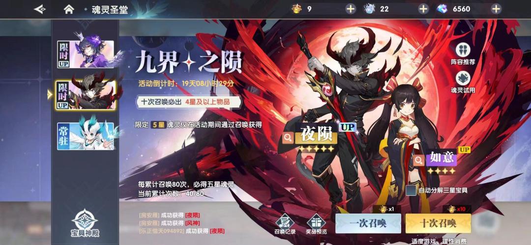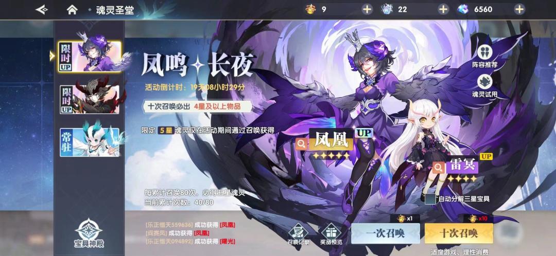 凤鸣长夜、九界之陨,5星魂灵凤凰、夜陨获得概率提升