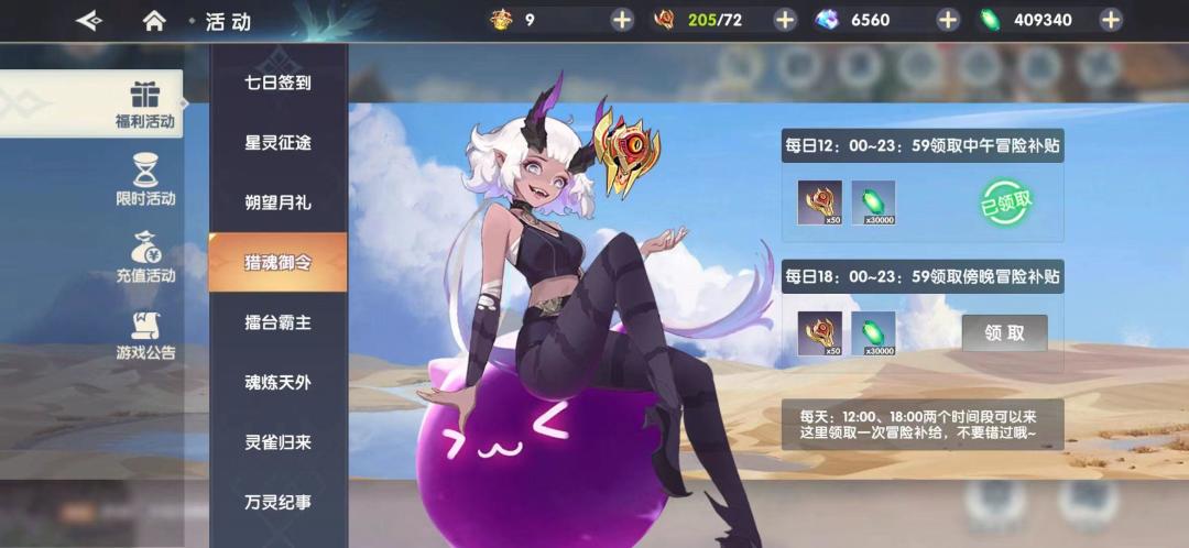 活动期间内,12点、18点登录游戏都可获得冒险补给:魂令*50、灵石*30000