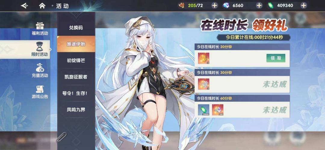 活动期间每天的在线达到一定的时间,则可以获得对应的奖励,奖励包含:灵钻、灵犀之魄、灵犀之魂。