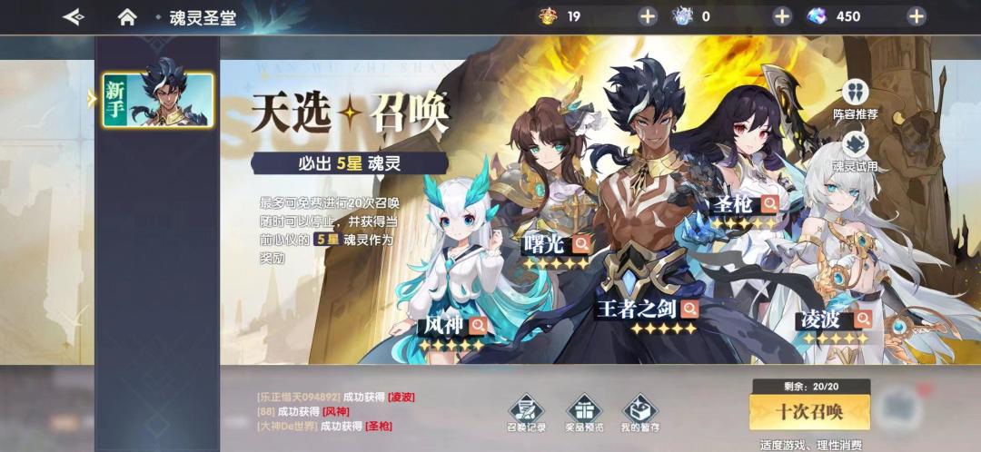 天选召唤,十连召唤必定获得天选召唤卡池内5星魂灵。