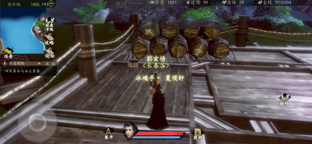 连环坞这个位置,然后往前走触发剧情,需要600轻功才能飞过去。