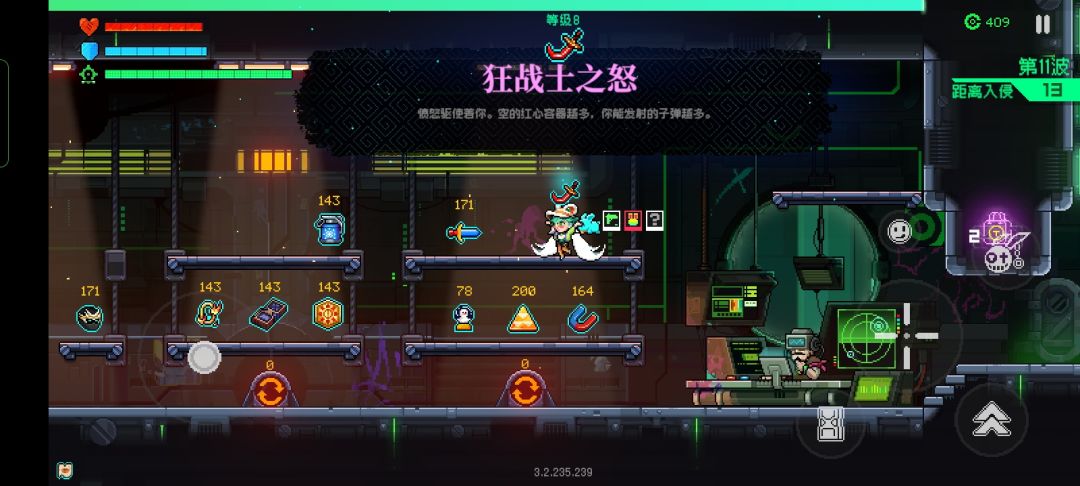 这时候可以购买加武器等级的(5波之前用不太到武器等级),加子弹数量的,以及飞行道具,神性天马恶魔,三个随便哪个都行,只要能飞就可以,后面买移速道具
