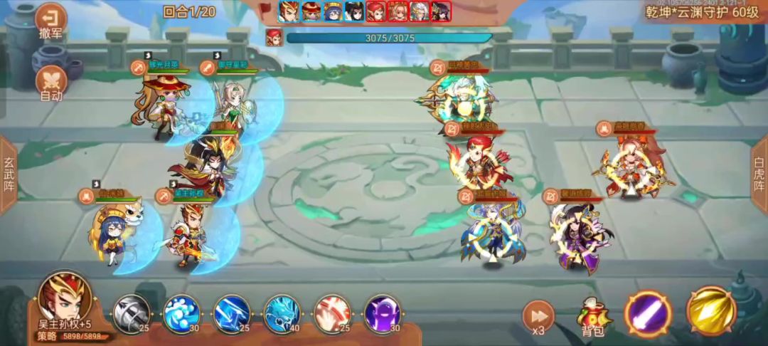 乾坤云渊五,关卡难点:华佗回合回血有点麻爪。大佬们给的攻略是用崆峒孙权,伏羲月英。我试了一下,感觉还是伏羲孙权好用些。没啥特别技巧,靠左慈多反伤,靠我方崆峒印多生效,策略回合我方输出盯着华佗打。9回合破阵后基本很稳,13回合干死华佗。过关伤害够够的!放手去干吧胸弟萌。