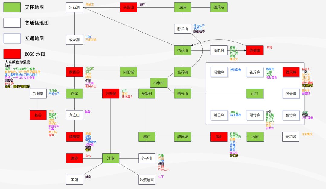 诛仙世界地图和怪物分布(地图部分感谢玩家“晨”的绘制,怪物数据部分“感谢群主PC被抓走了”和“你当我是浮夸吧”两位玩家的提供)