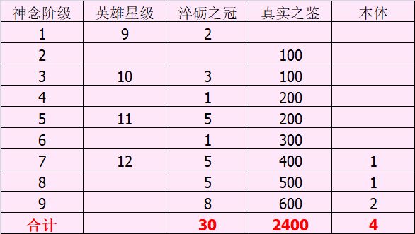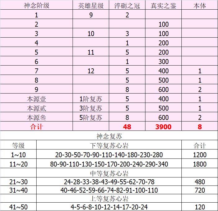 重新排版便于快速找到自己想要的消耗,在总表的基础上,单独发一张神念消耗