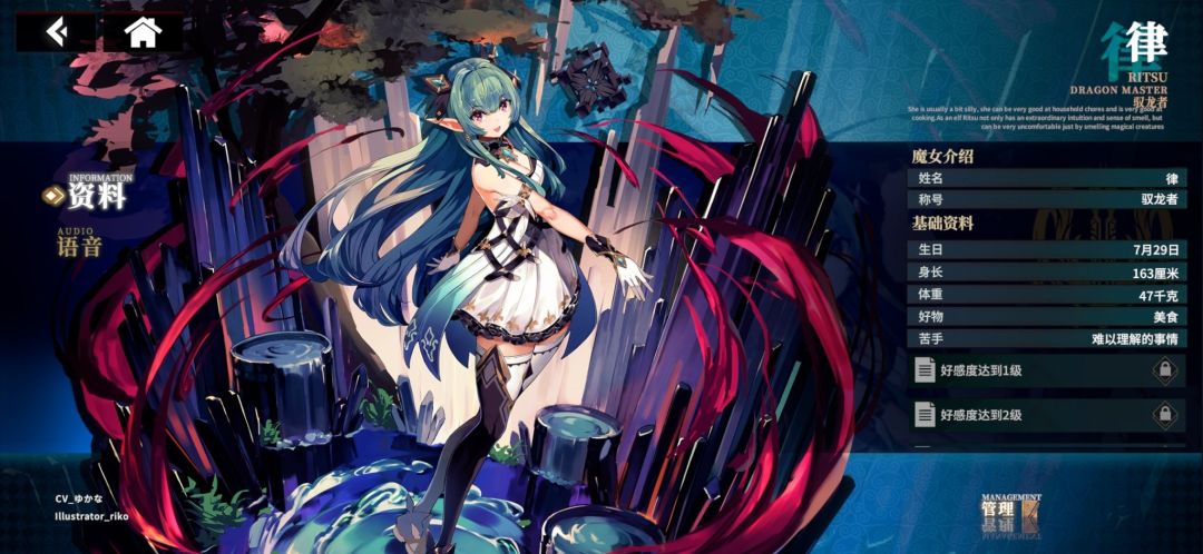 游戏中目前共有5名魔女,魔女的主界面会显示职业和定位,例如律就擅长弱点削弱,天赋中也有着相应的属性加成。