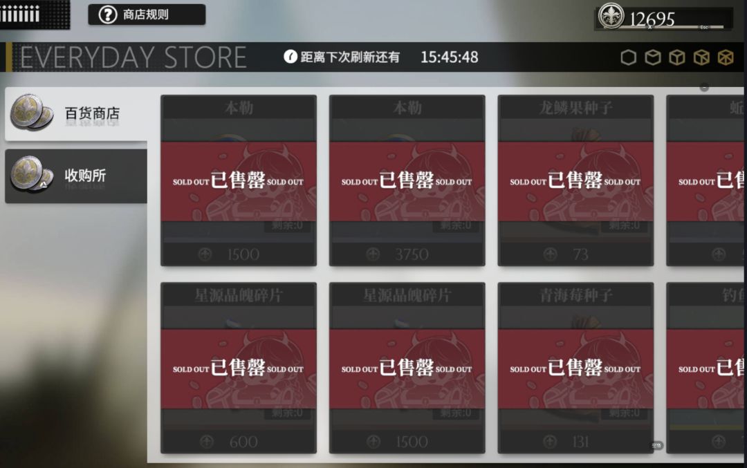 由于池子里是没有这两个角色的,全凭这个商店兑换,所以想拿满一个五觉需要12500