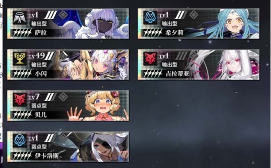 主人偶,可以理解为不同职业的主角,tag也标的很明白,五个人分别是【破防】【奶】【输出】【回蓝】【盾】,怎么用配什么队伍吃自己理解