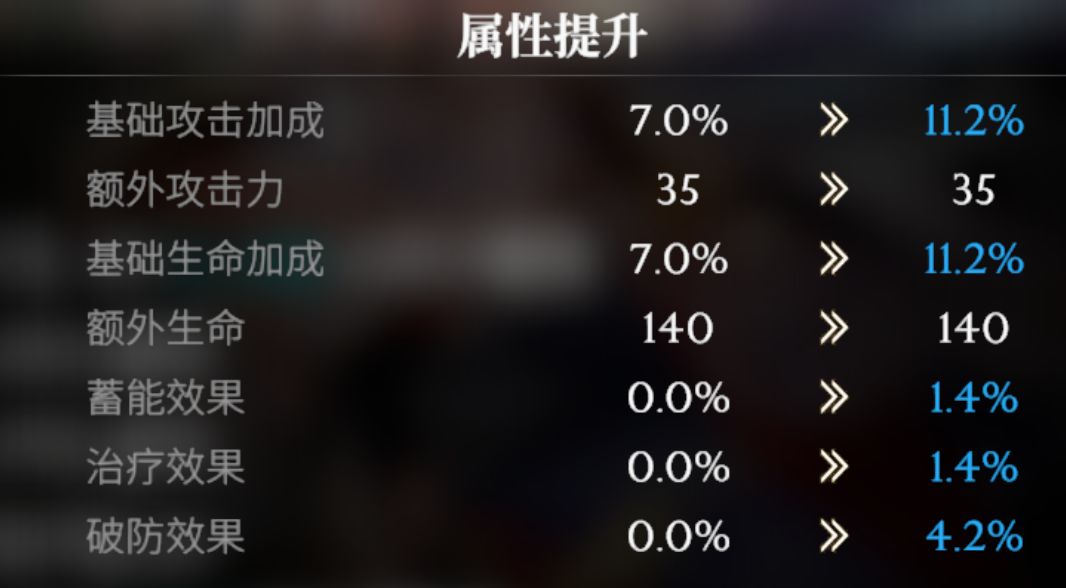 像伤害类技能不论aoe还是单体,一般都会增强造成的伤害系数,而破防类的技能可能会增加破防效果,