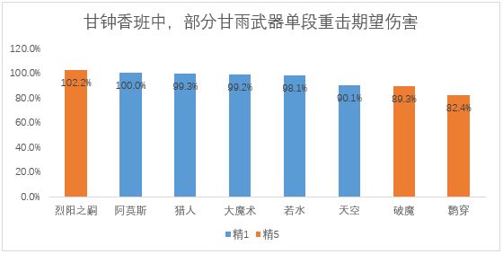 以下是甘雨计算单箭(非首箭)和5箭的情况下,部分武器的区别。