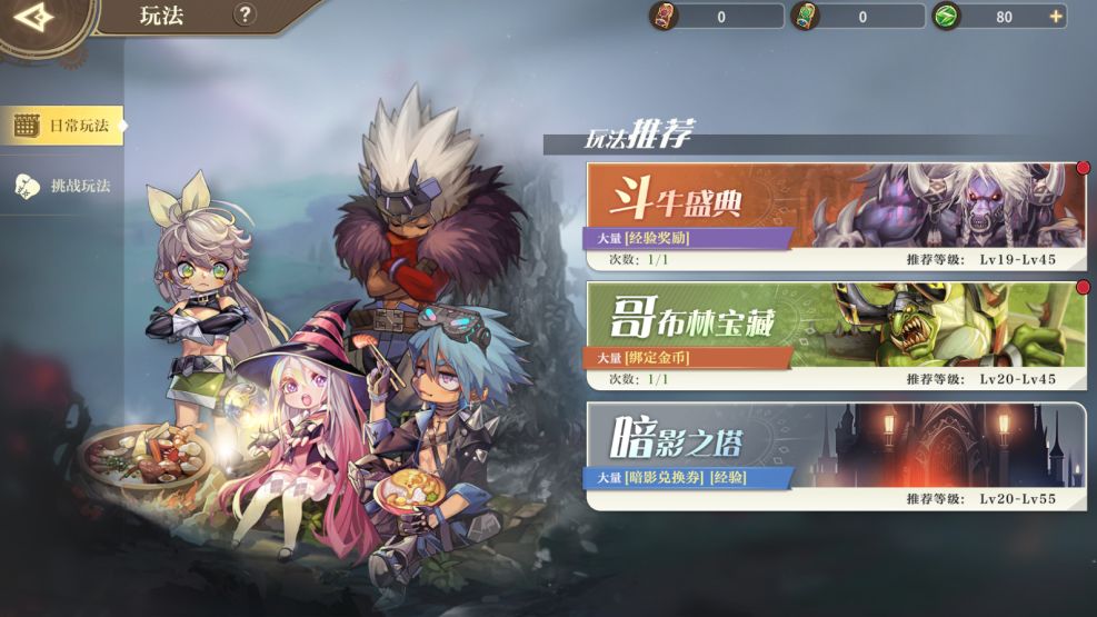 功能说明:通过【日常玩法】挑战,冒险家可以获得大量经验、绑定金币、暗影兑换券,以上奖励可以帮助大家更快速的提升角色等级,扩展背包、强化装备。还可以登上暗影之塔挑战排行榜,向更多人展示你的强大哦ヾ(๑╹◡╹)ノ"