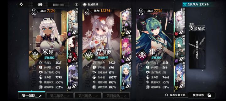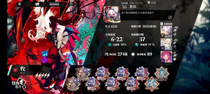 黑天使和牧基本就是补伤害收割的,我没养,等后面桃和雷雷出了换掉。黑天使看情况,满觉还是可以玩玩,不过还是比起小闪差一点,毕竟侵蚀队加上龙妈三刷压血能力已经很强了,小闪基本是随便收割的。
