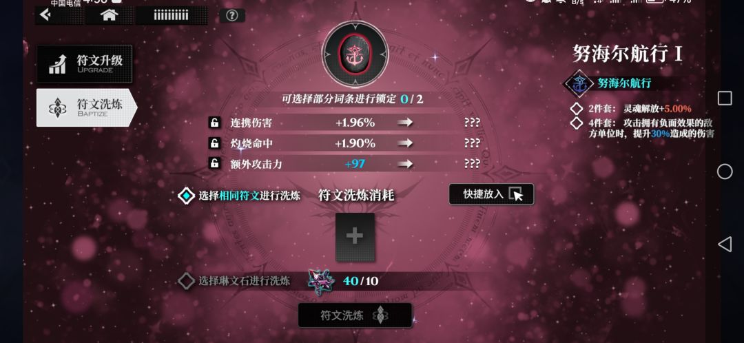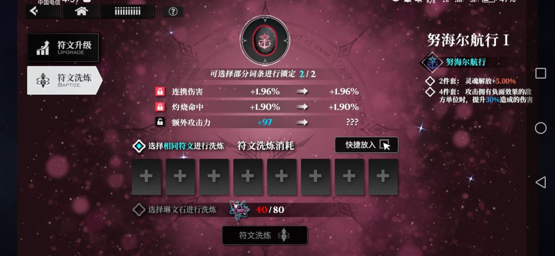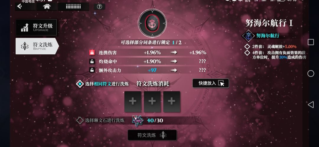 这个算是比较大后期的玩法了,可以消耗道具或者相同符文对副属性进行洗练。道具可以在主线中爬塔获取,有大量洗练道具可获得。(我嫌弃太肝了还没打)。