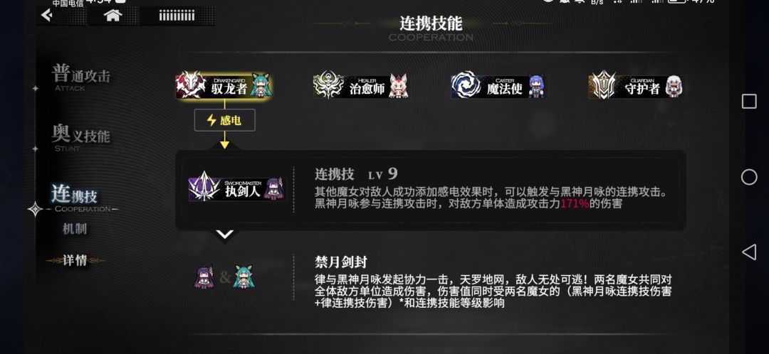 这游戏目前五个魔女有五套连携,各自的触发条件也不一样,比如侵蚀,减怒,感电,灼烧等。
