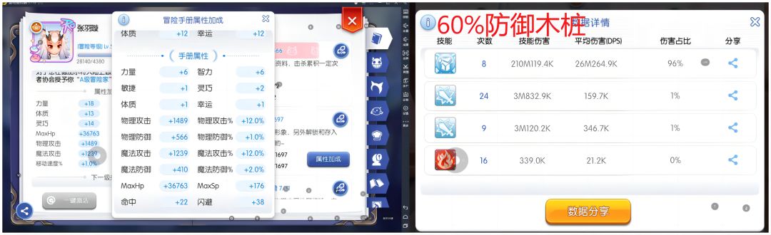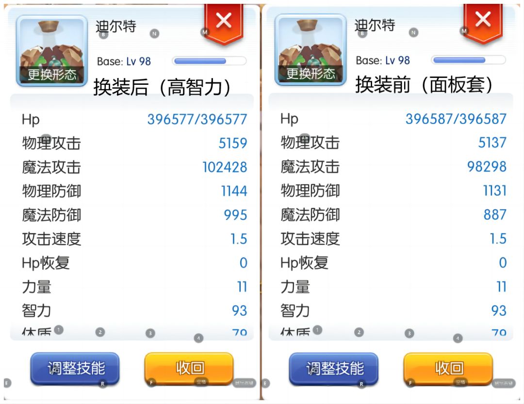 可以看到换上魔攻套通灵后bb魔攻提高了60%,伤害提升幅度是相当大的