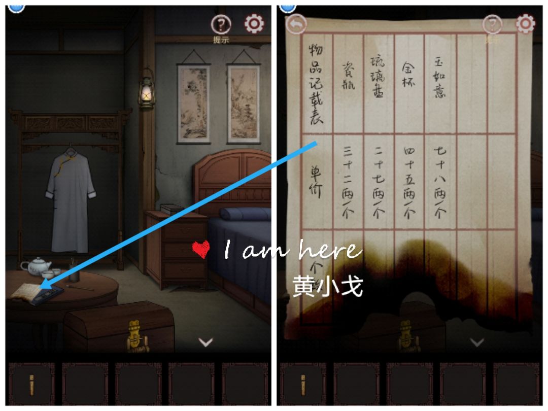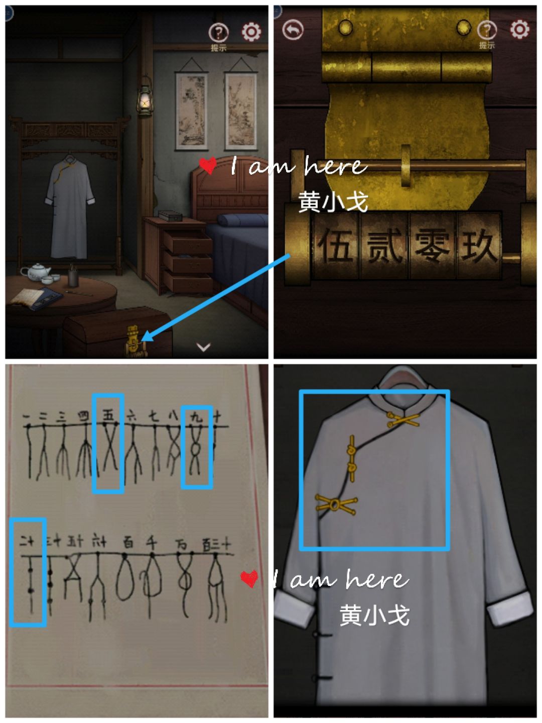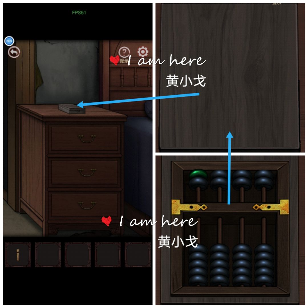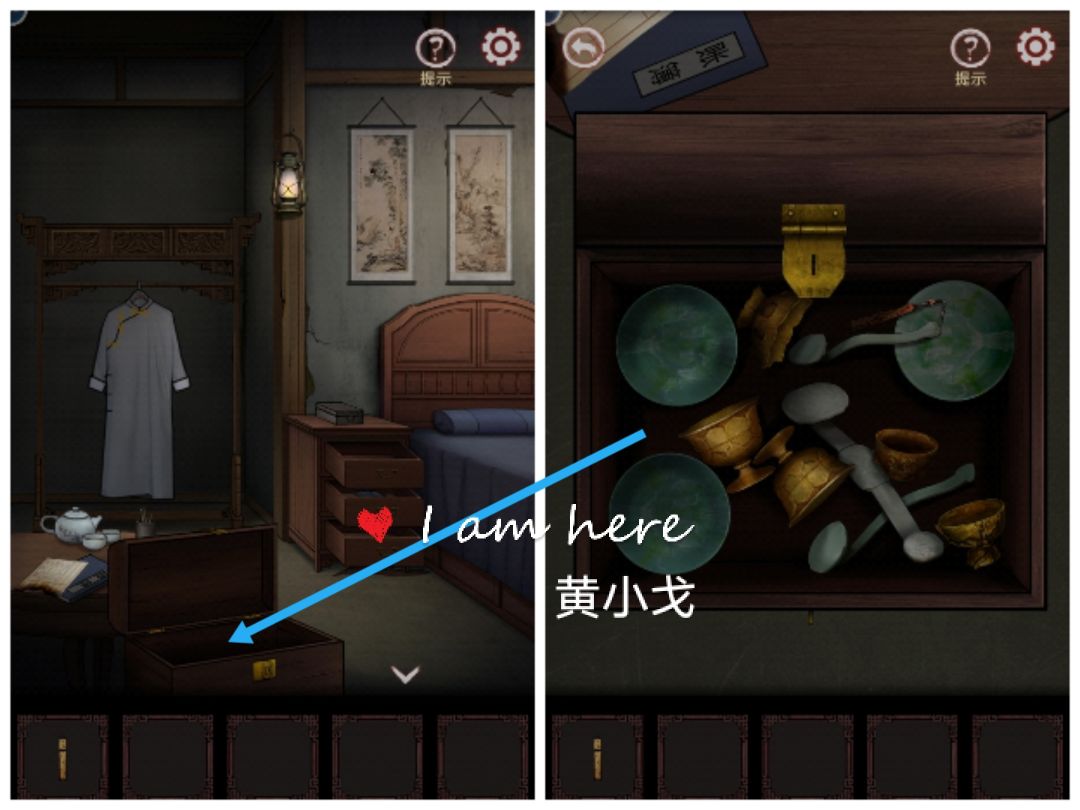 9.点击地上的箱子,根据日记本上的信息和衣服上的扣子样式(从上到下),得出密码:5209,输入密码