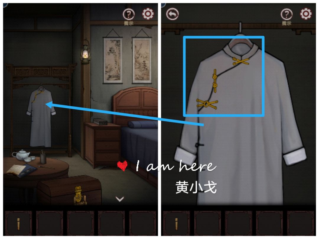 6.(左边-房间)点击衣架上的衣服,注意看衣服上的扣子样式