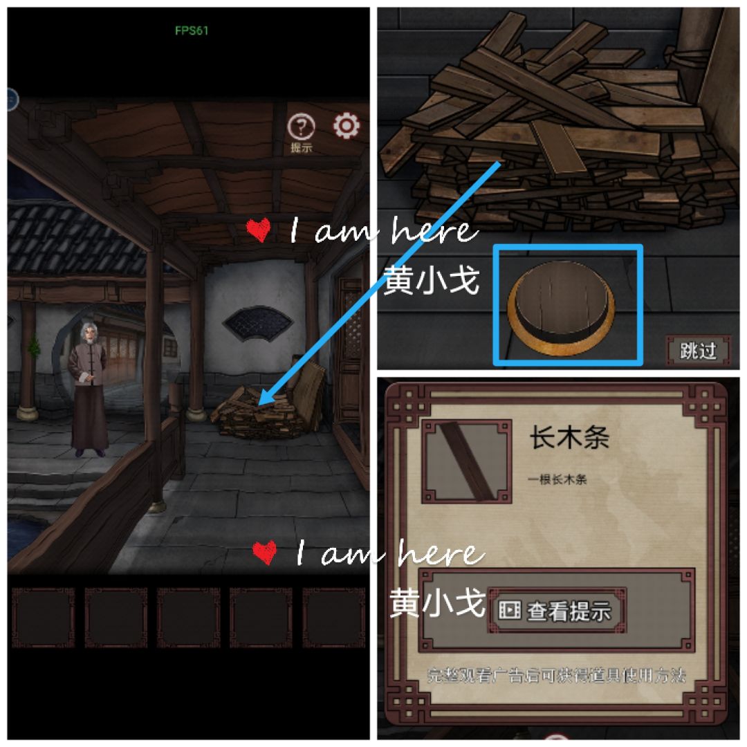 1.(通道)点击木板堆,完成小游戏(一直点那个按钮,手速要快),获得【长木条】