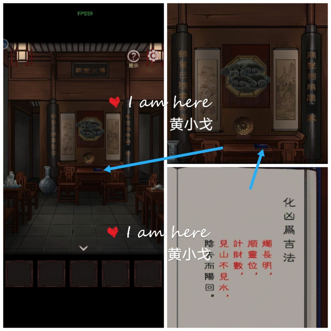 2.(大堂)点击桌子,查看上面的书,获得线索(化凶为吉方法:烛长明、顺灵位、计财数、见山不见水)