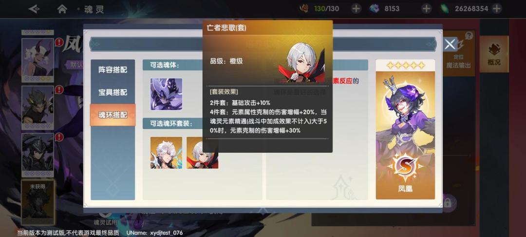 凤凰主打元素反应伤害,可搭配亡者悲歌套装。4件套效果,元素属性克制伤害增幅+20%