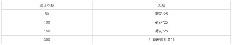 活动期间,通过“江湖磨砺”挂机,在挂机次数内必定掉落“春”、“兰”、“秋”、“菊”集字道具中其中1个,集齐四个字可兑换道具“菊花酒”,收集“菊花酒”可以兑换各式好礼。