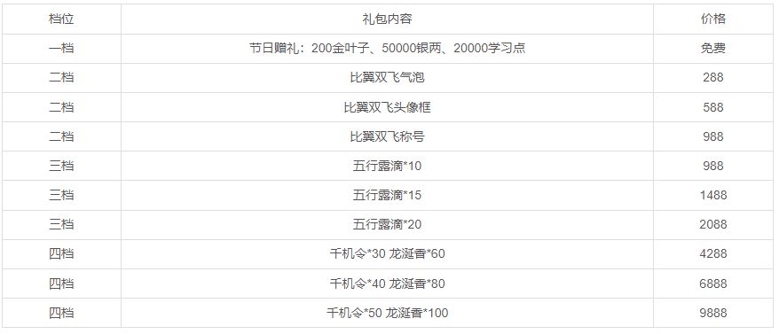 活动一:活动期间将限时上架节日礼包,礼包内容如下: