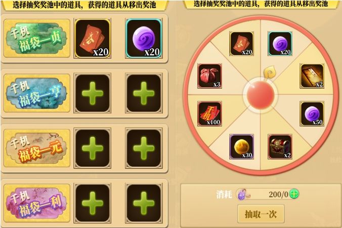 1.选择物品界面分为四个奖池,每个奖池中道具最多选择两个,道具不可重复选择;