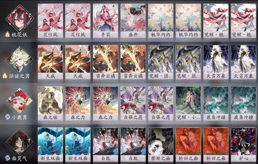 30个式神不利于集卡。有一张SSR能当核心的式神如下:妖刀姬、雪女、白狼,这三个廉价好搭。书翁,常见搭配队友贵,上手又难,仅供了解。