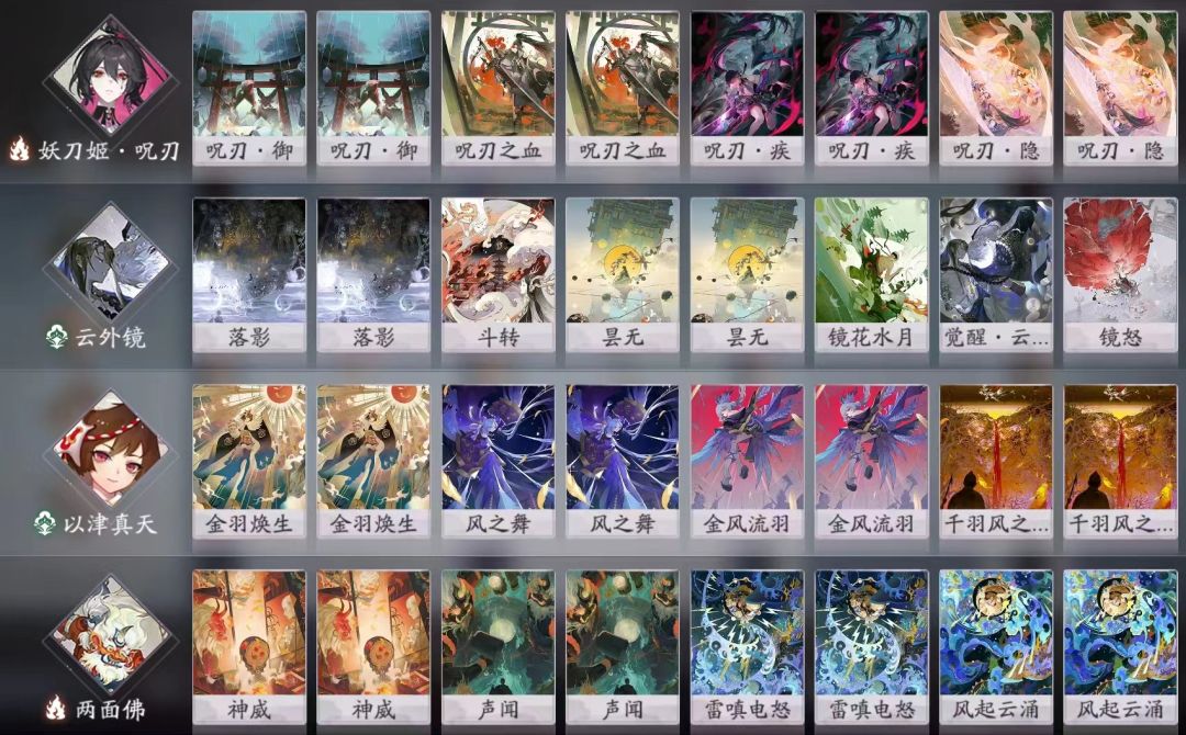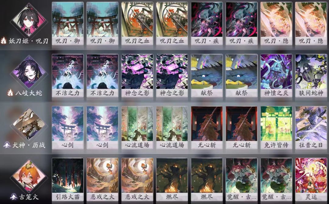 一般就是搞针对(快攻),搭配孟婆或者百目鬼这种特殊胜利式神。因为卡组依赖SSR,不列出。