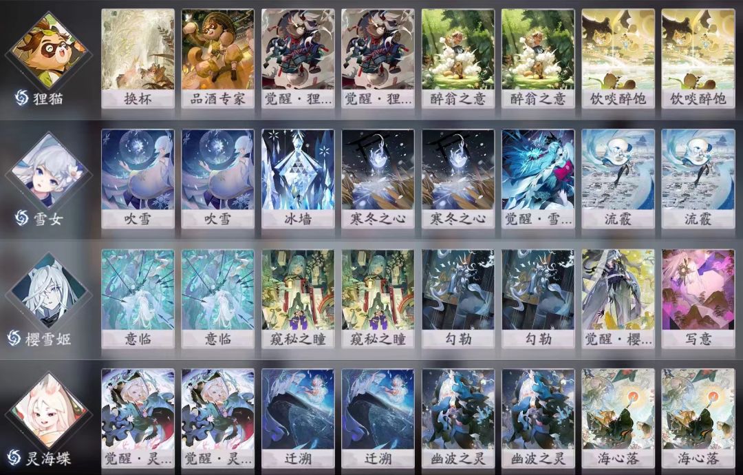 狸猫增强后,可以当后期核使用,灵海蝶这个位置可以换雪童子、般若、面灵气、小鹿男等等,雪童子、般若不需要SSR。