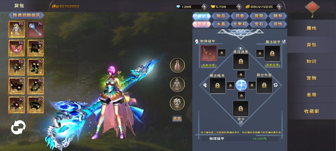 游戏中装备类型主要有10种类型 ,每种类型对应着不同的属性