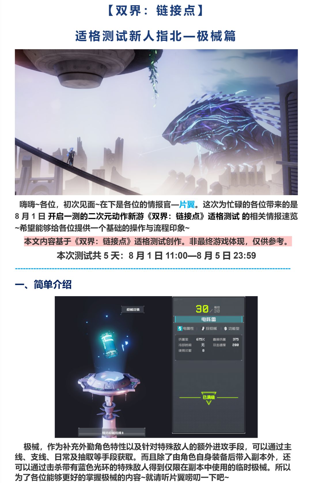 【双界:链接点】适格测试简易新人指北——极械篇