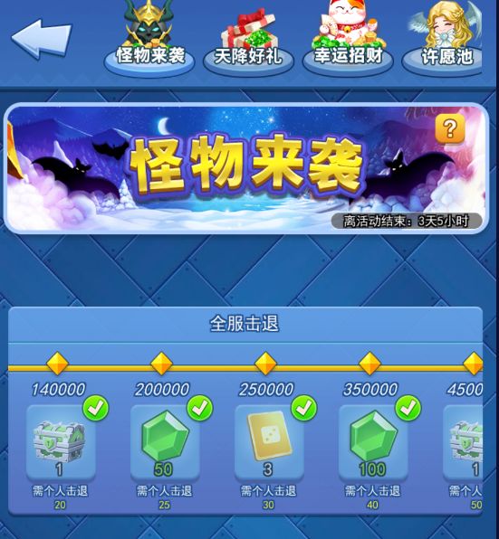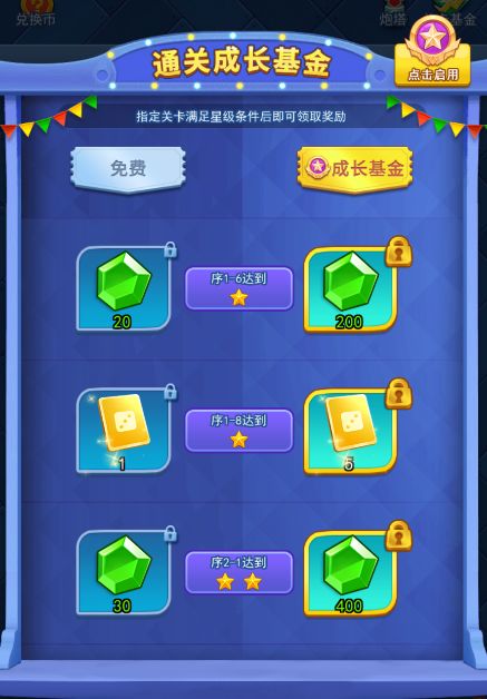通关奖励参与塔防关卡满足星级条件后可以领取召唤券奖励。