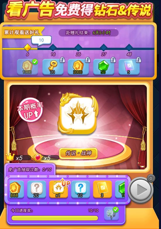 参与转盘玩法,累计观看次数可以获得召唤券。
