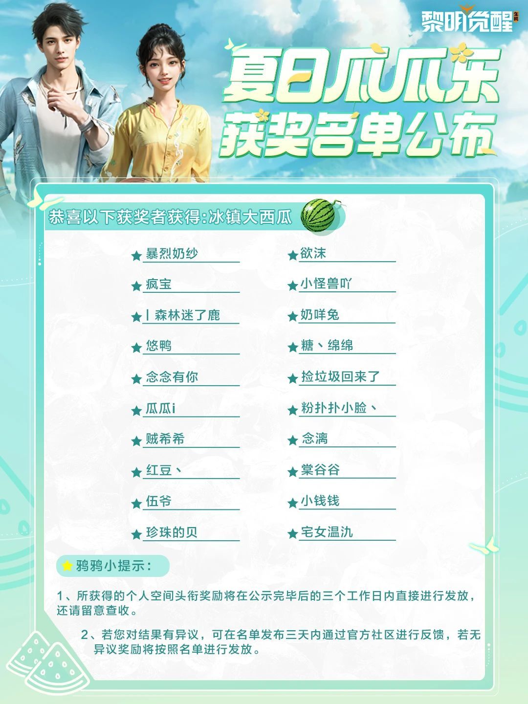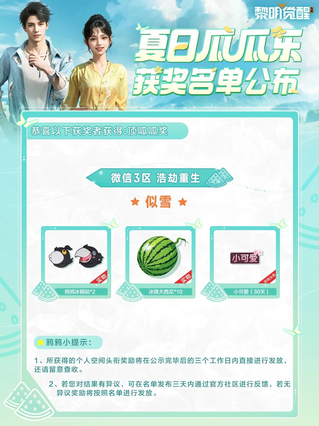 夏日瓜瓜乐活动开奖喽