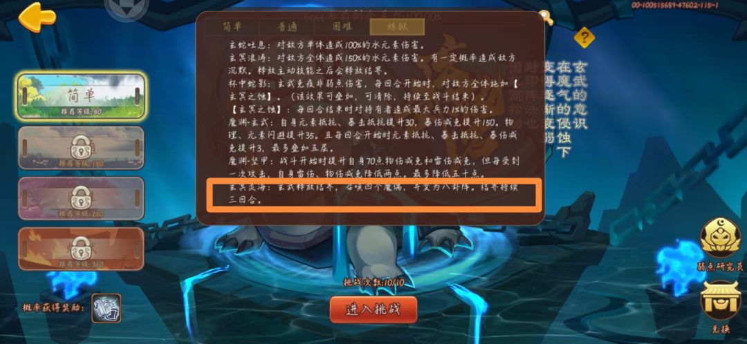 困难玄武的难度比确实比困难青龙难了些,但绝对不至于难倒那些已经通关困难青龙的玩家,问题的关键还是在于大家对于玄武技能机制不了解,所以接下来我会带着大家简单分析一下玄武的技能机制并且提供几个可行的打法。