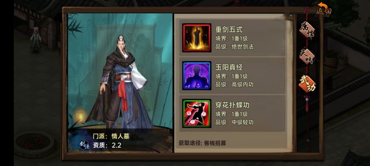 剑法侠客外功自带命中属性,一般作为主c输出培养