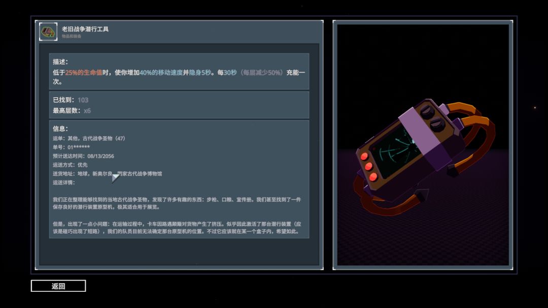 保命装备,低于25%生命隐身,在被群殴的时候逃脱必备,必备一个。