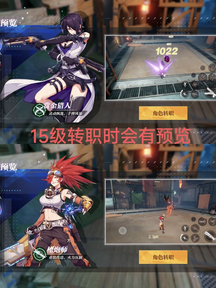 游戏是一共有四个大的职业,为剑士、火枪手、魔偶师、魔导师。在我们游戏到达15级以后还能解锁转职功能。每个主要角色都能分别转为两种职业。剑士(魔剑士/狂战士)
