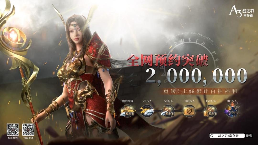 全网公测预约量已达200W,恭喜勇士们解锁全部预约福利!公测开启后,已经成功预约的勇士进入游戏即可领取连抽、6星魂契者等预约奖励,助力你的冒险之旅!同时参与开服活动,更有机会解锁至多百抽奖励,勇士们可千万不要错过!