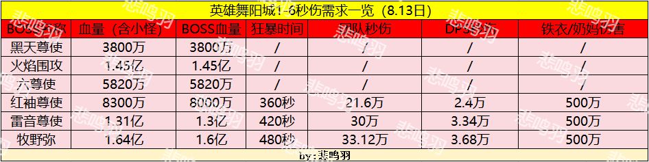 削弱前:老六秒伤需求(3.68万)BOSS血量为1亿6千万。含小怪的血量为1亿6千4百50万。480秒狂暴时间,假设铁衣奶妈总共打500万伤害(不包含切破的副T伤害)。其余DPS总秒伤需求为33.12万,折算到每个DPS头上为3.68万。