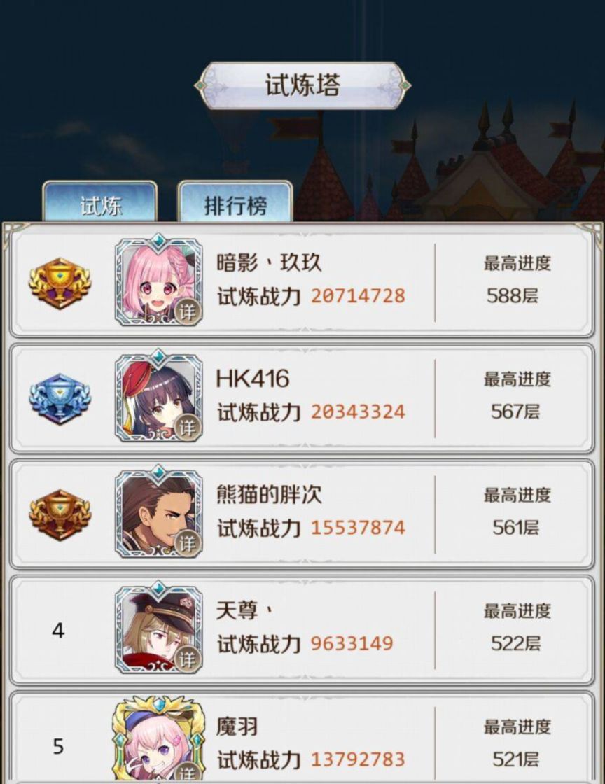 许多玩家看到有些人周一就已经400+层了,就很着急,于是频繁地转生想要追上去,殊不知这些玩家都是坐电梯的,最后一定会被狠狠地踩下去。我一般周四左右就能稳站榜1,从此不可超越,这样不是更爽么~更何况这试练塔又没有排名奖励,没必要着急的(有排名奖励我就不做攻略闷声发大财了,嘻嘻)