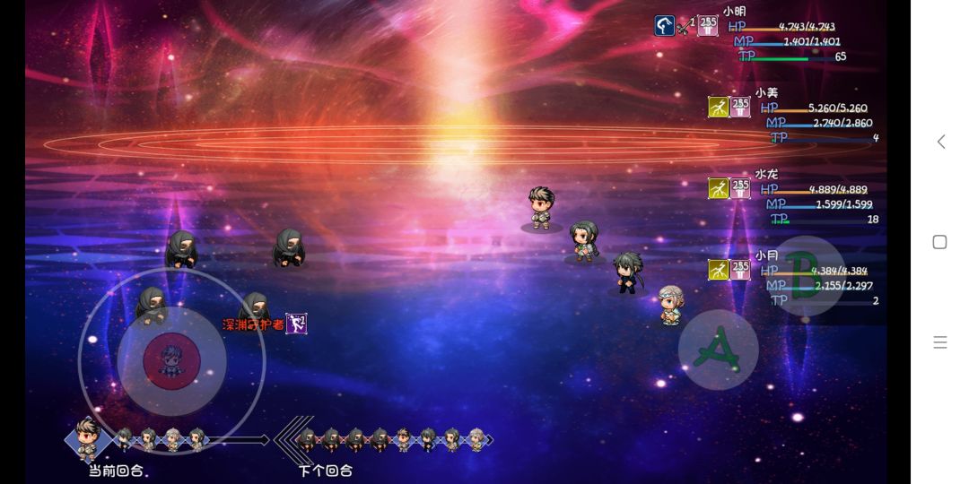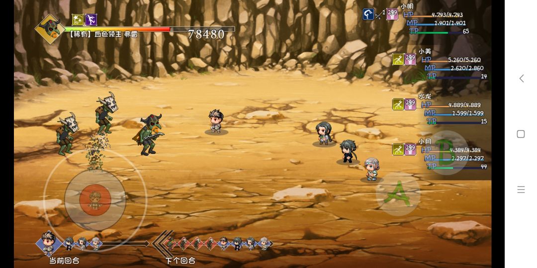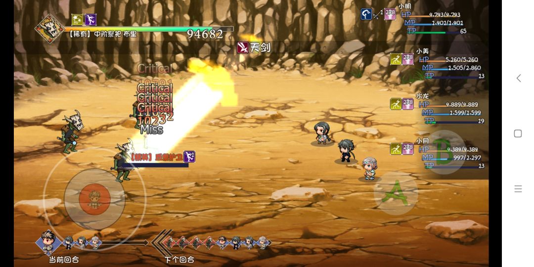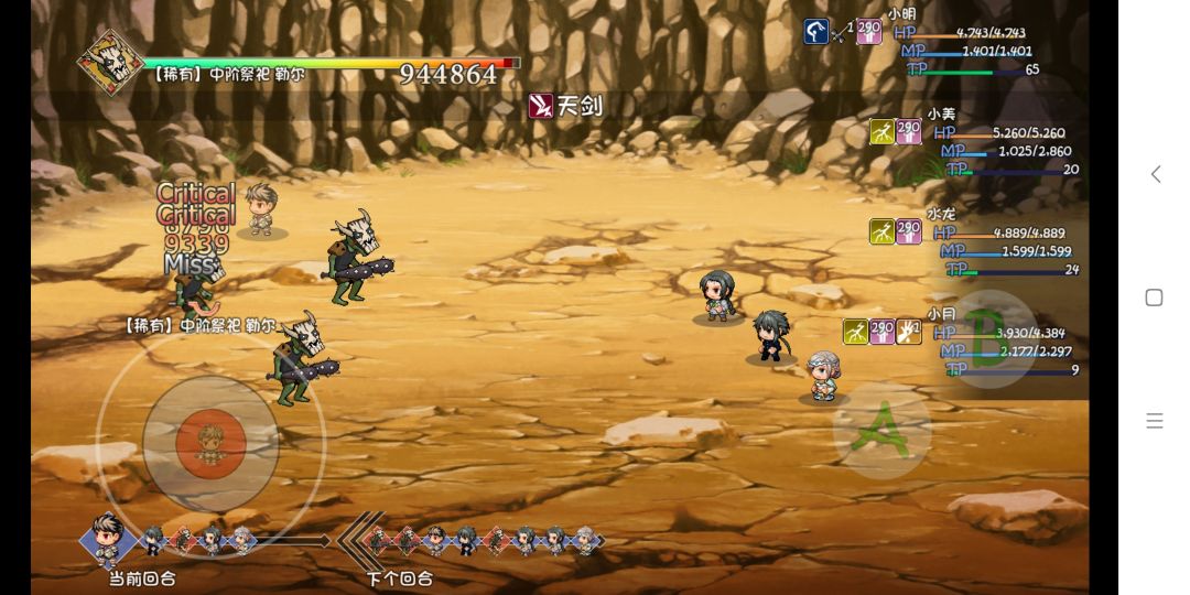 首先是这个法抗高物抗低的精英怪,天剑第一下是固定戳第一个小怪的,如果第一回合可以秒掉就尽量秒,这样可以确保天剑可以戳到精英怪,秒不掉的可以先打其他的怪用天剑秒,剩下两个小怪没什么威胁