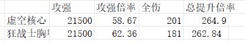 全伤上面算过,一共181加上虚空核心20全伤 201全伤