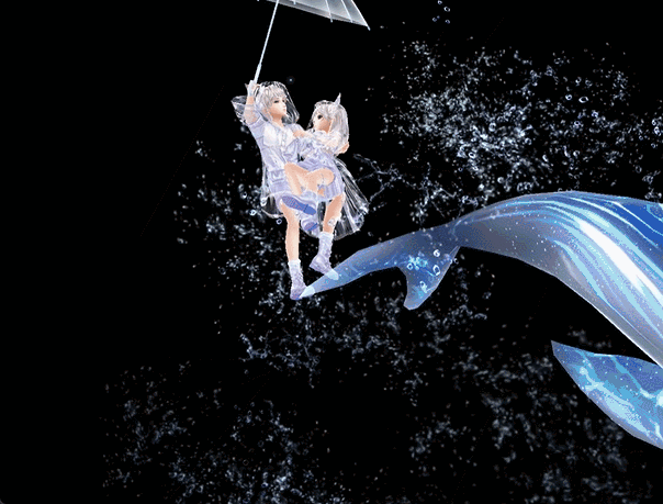 海豚跃起庞大的身躯,溅起大片水花。男生让女生握住伞,将她拉到自己身边。