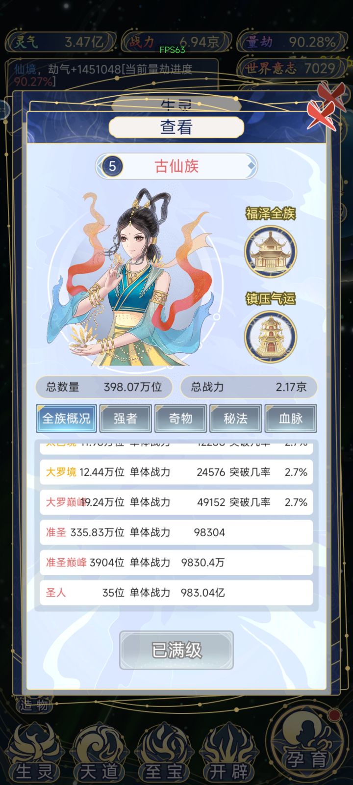 先结论:人族拥有7层气运优势后,总体战力不低于古仙
