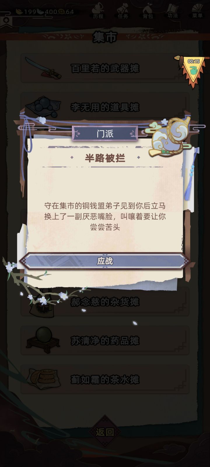 我们除了门派薪金、缉拿悬赏、运送镖单这三种赚大钱的方法以外还可靠【多次】进入仇敌门派(关系为死敌)的集市、酒馆等地【激发比斗】赚钱(打个比方就是集市,我们第一次进敌派集市如果没激发比斗,那就退出集市,再点进集市,就这么来回点到出现比斗为止)。